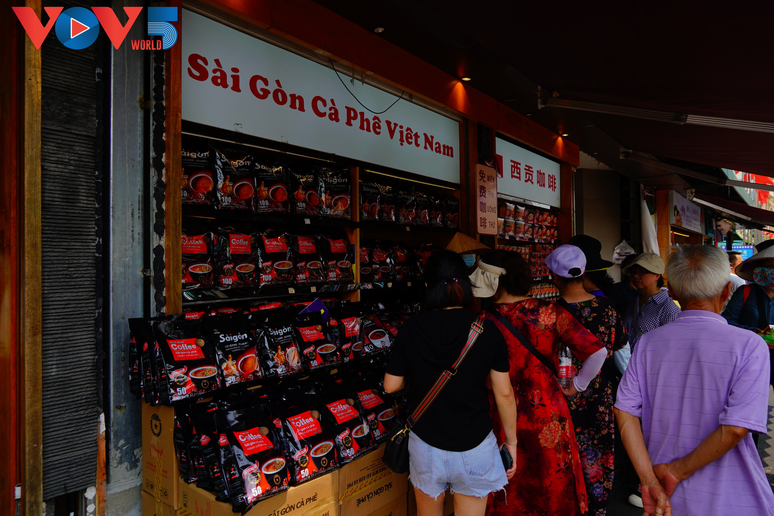 山东游客陈朱专门找到位于万众市场最显眼位置的西贡咖啡店,希望买到他去越南旅游时曾喝过的咖啡。陈朱说:“我很喜欢这种咖啡,还带家人来买。它的口味很纯正,口感蛮好的。”