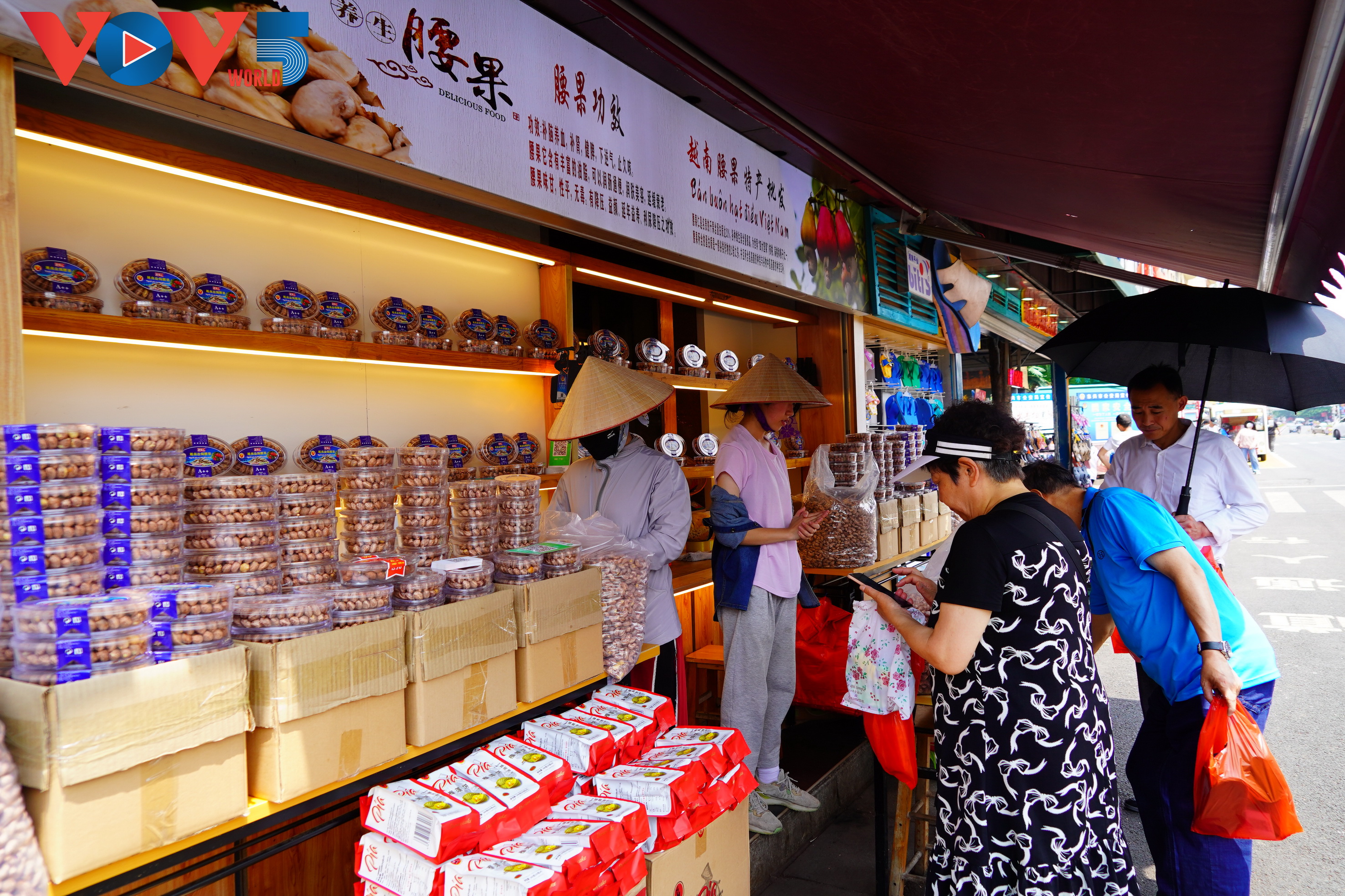 除了咖啡外,越南热带农产品,特别是腰果、水果也广受中国消费者喜欢。万众市场专卖菠萝蜜、榴莲的小商贩大部分是越南人。他们上午通过芒街-东兴口岸从越南到中国,下午又回越南。市场里也有一些中国小商贩。不过,他们都有一个共同点,就是都能讲中文和越南语,以方便与顾客沟通。