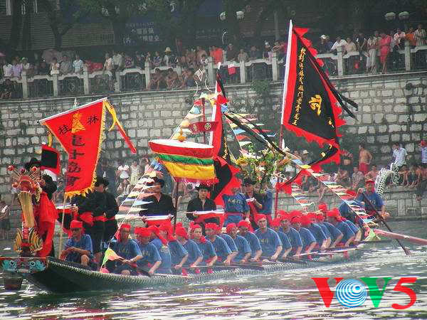 (VOVworld)- 日前,我台收到桂林王青龙听友的一封电邮。他说:今年桂林端午节举行了十分精彩的赛龙舟。这是中国人过端午节的一项传统活动。他说,一来是因为家乡桂林有一条美丽的漓江,二来是因为他从小喜欢赛龙舟,因此他想向越南朋友们介绍这项故乡的传统特色活动。他还给我们发来了今年桂林端午节赛龙舟活动的照片,与广大听友分享。
