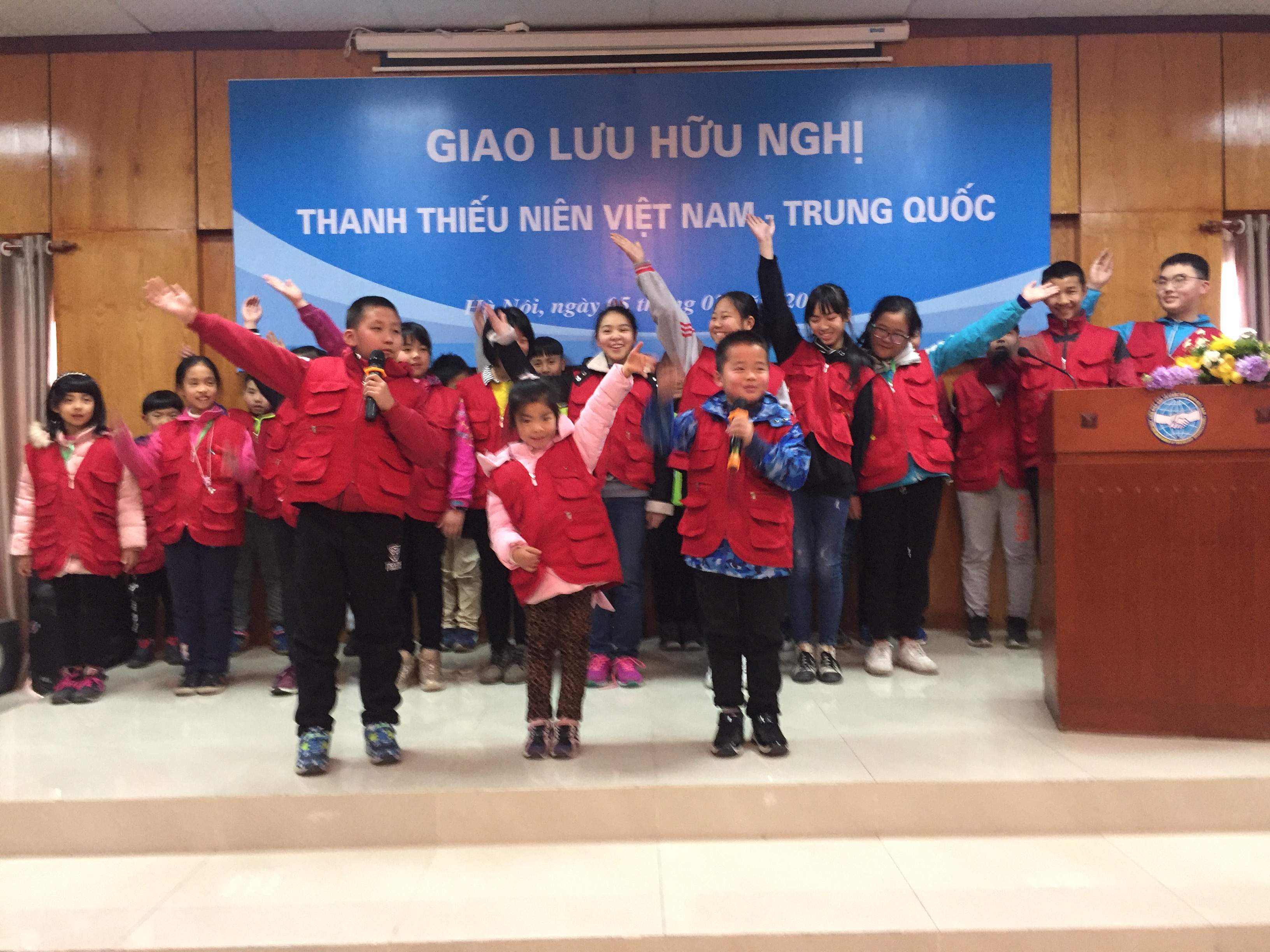 这是中国小朋友2月中旬在越南友好组织联合会总部大楼同越中友协的友好人士与河内学生交流时表演的节目之一。歌词是前一天晚上刚填好的。