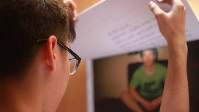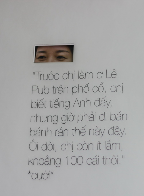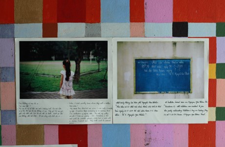在100多平方米的房子里,所有房间、走廊、花园都成为展示点:入门左边的茶厅里挂满了儿童的照片及手写的故事,中间的走廊墙上挂着被白纸遮盖,只露出双眼的人物照片,花园里是数百张用线悬挂的照片。此外,观众也可发现越南传统长衫“奥黛”也带着现代元素。