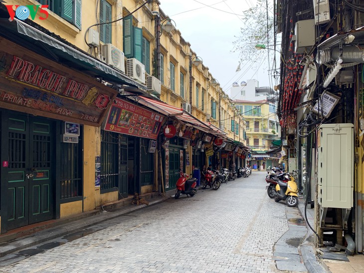 河内古街曾经十分热闹。但是,受新冠肺炎疫情影响,这里的许多商店不得不关门或暂停营业。大部分是旅行社、服装店、餐馆、美容店。 |
