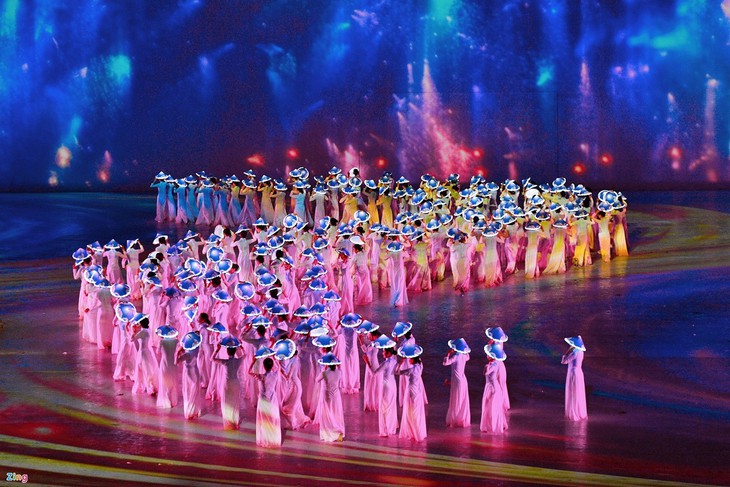 开幕式开头是经过精心排练的精彩艺术表演,展示代表越南国家和人民的各种形象。