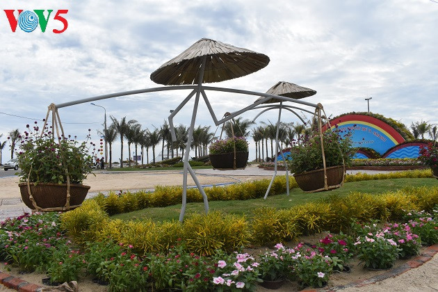 广南各条街道、海滩都装扮鲜花和当地典型实物