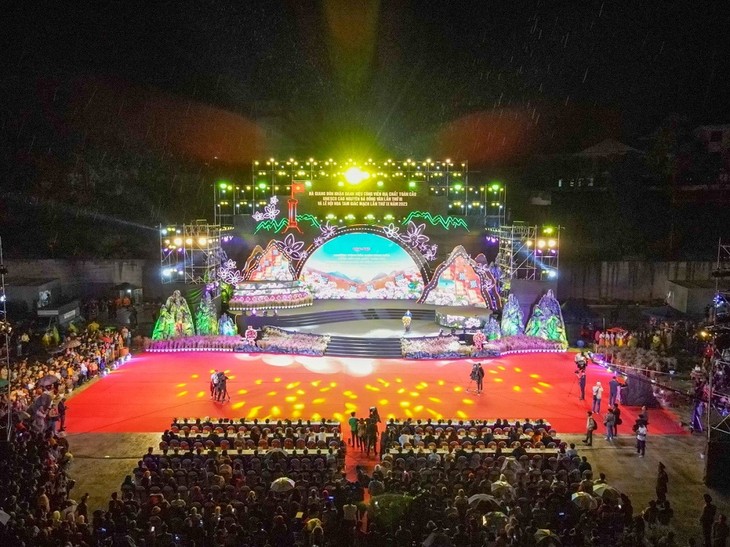 世界地质公园证书颁授仪式于2023年10月28日晚在河江省同文县青年广场隆重举行。图片来源:《前锋报》