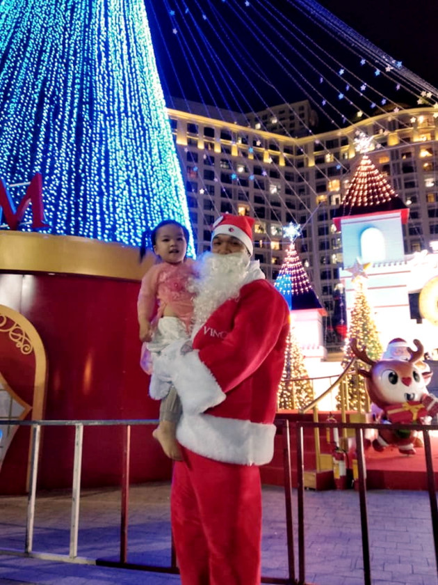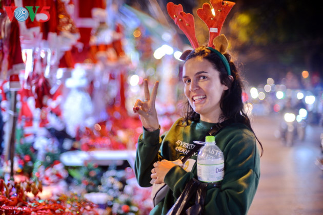 这几天,河内各条街道摆满了各式各样的圣诞装饰品。 |