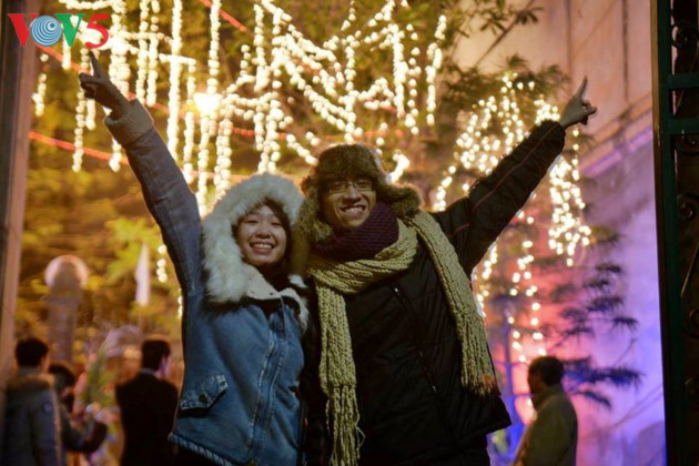 在缤纷多彩的灯光以及热闹的圣诞气氛中,河内居民喜迎2018年圣诞节。 |