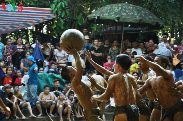 古人使用菠萝蜜木制作的比赛用球被庄重地放在圣庙的院子里。 |