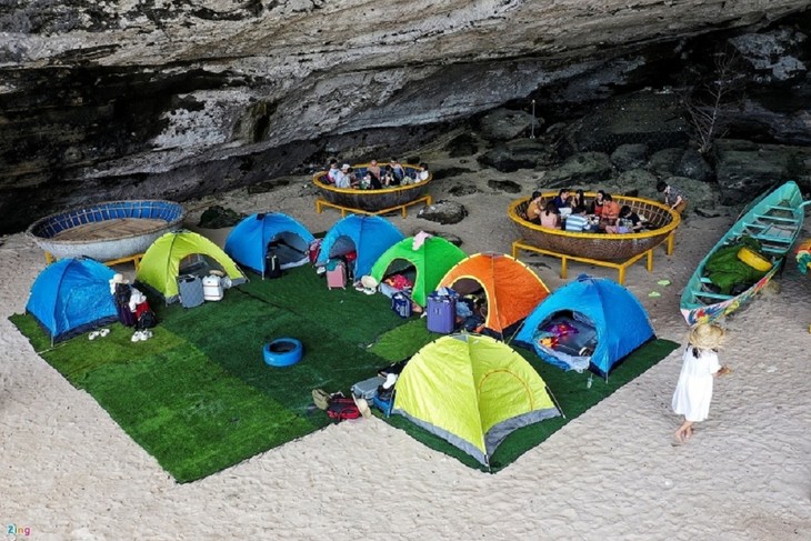 在洞里扎营过夜是一种很新鲜的体验。图片来源:《laodong.vn》新闻网。