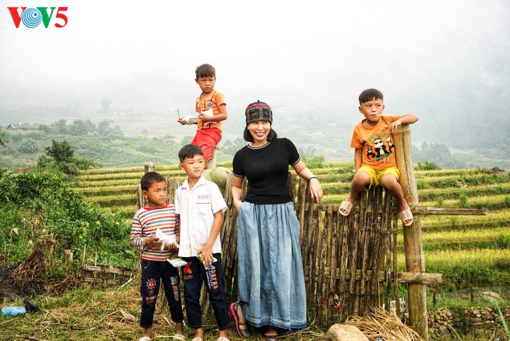 游客和穆庚寨小孩.图片来源: 尹阮 |