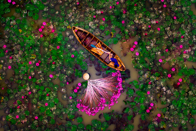 荣获鼓励奖的作品:睡莲收获季节。作者:杜进稳(芹苴) |
