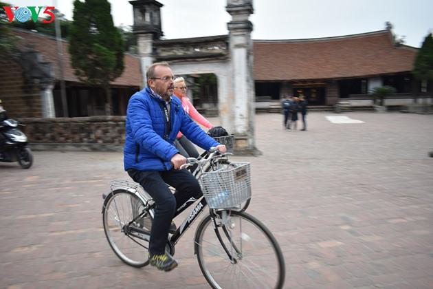 在唐林古村的小砖路上骑自行车受到许多西方游客的喜爱 |