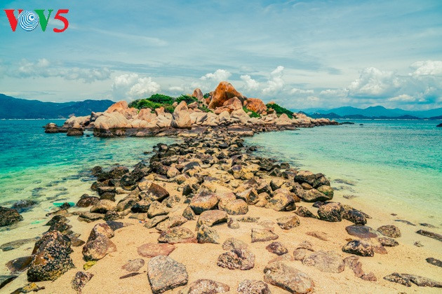 古屋滩(Bãi Nhà Cũ)的碧海、金沙、绿水 |