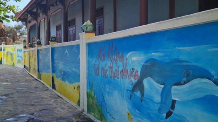壁画还传递保护环境的信息,有助于提高当地居民和游客的环保意识。图片来源:《交通报新闻网》(baogiaothong.vn)。