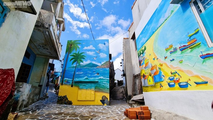 栩栩如生的壁画改变了渔村面貌,不再像以前那样潮湿、邋遢了。图片来源:《交通报新闻网》(baogiaothong.vn)。