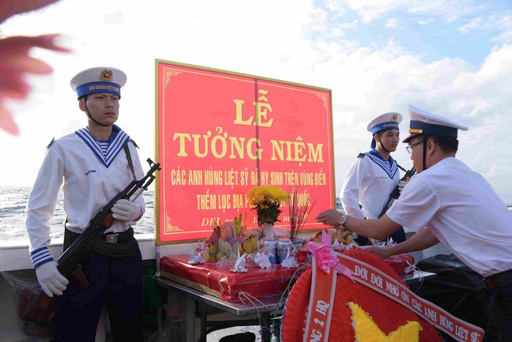 代表团在KN 261号船上悼念在祖国南部大陆架海域英勇牺牲的英雄烈士。