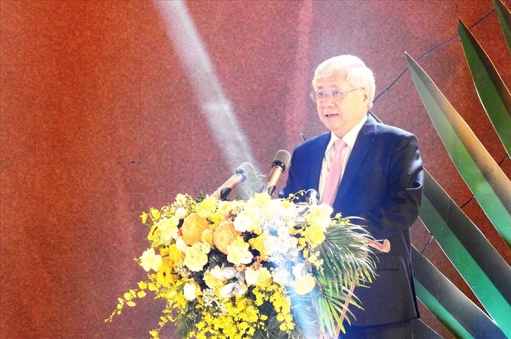 越共中央书记处书记、祖国阵线中央委员会主席杜文战同中央多个部门、单位代表及各地方领导人出席开幕式。图片来源:《民族与发展报》。 |