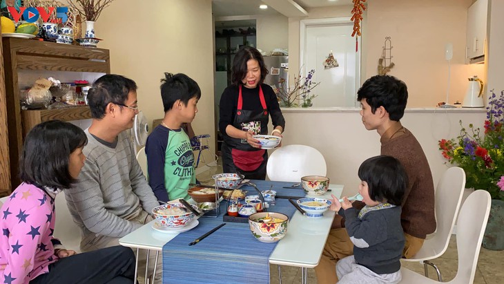 记者永娟说:“什锦丝汤米线是河内特色美食。过去,家庭主妇一般在大年初三做这道风味小食。大年初一、初二,吃了很多粽子、肉和鱼后,能吃到一碗米线真是太开胃了。起初,只在春节期间做,但现在一年四季都可以做,用于聚餐和招待密友。什锦丝汤米线的做法很讲究,需要20多种食材,其中不可少的是咸蛋、肉团、鸡肉、蛋等。汤必须有方格星虫和虾干。有了这些才能有什锦丝汤米线的味道。另外,还要一点印田鳖蝽精油和虾酱。”