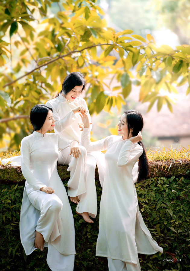 (VOVWORLD) - 站在越南北部三间两厢传统住房、石桥、水井、村口、漂着浮萍的池塘等旁边身穿“奥黛”、肚兜的姑娘体现了一种古典美、传统的娴静气质、古老的阳光季节、过去的时光,其在画家、摄影师阮国勇的作品中显得那么纯真。