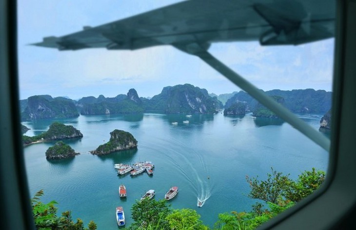 从水上飞机上欣赏下龙湾。图片来源:truyenhinhdulich.vn |