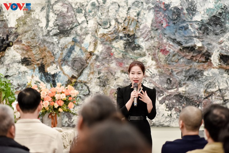 星期六作坊创始人阮氏贵芳在开业仪式上致辞。