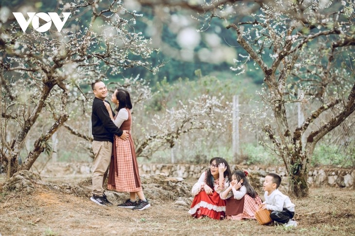 (VOVWORLD) - 这个季节,如果有机会来到木州高原,游客会仿佛进入了仙境,这是一个山谷、山坡被盛开的李花染成了白色的仙境。