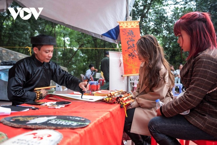 越南人年初到寺庙还为了求字,求来富含意义的字或对联,带回家,挂在最庄严的地方。图片来源:VOV,摄影:俊英。