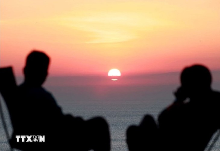 迎接祖国第一缕曙光是每一名游客参观电角时都希望体验的。图片来源:越南通讯社,摄影:日英。 |