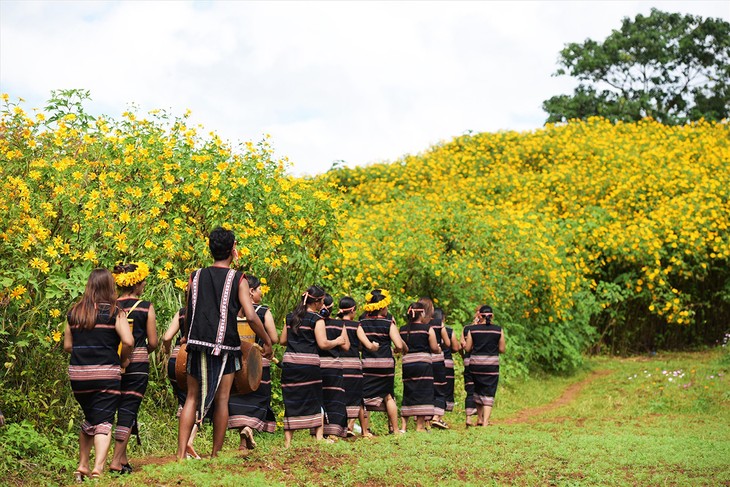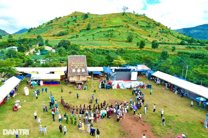 嘉莱省诸巴县(Chư Păh)人委会举行“诸登亚火山肿柄菊花节”活动,为当地居民和八方游客来参观、探索提供服务。图片来源:《民智报》。