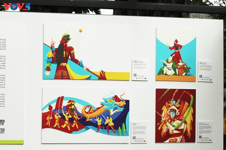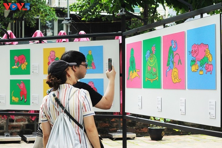 “Z世代眼中的民间画”图片展最近在河内文庙国子监开幕,向公众介绍年轻一代对国家民间文化新颖而创新的视角。图片来源:河内市文化体育局。 |