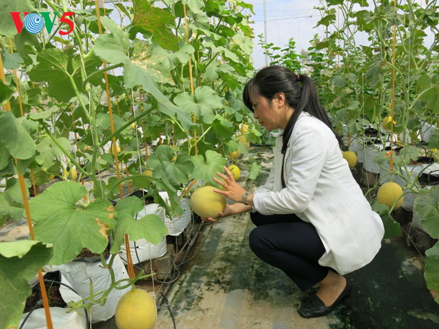 在海防市建瑞县义端乡的温室大棚,高文英一家正准备收割黄金瓜和照顾正在结果的白兰瓜床。他家的温室大棚得到东南亚进出口与服务公司提供经费、种苗扶助,近两年来还负责包销产品。据高文英介绍,大棚种植比普通田地种植经济效益要高。大棚种植能避风雨、病虫害,不依赖天气,产品质量高。该模式的灌溉、施肥等所有工序都能通过电脑或智能手机监控。
