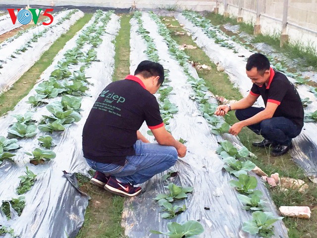 陈青叶说:“哪个农户想搭建大棚,我公司就会帮助其确定树种并包销其产品。我们还派技术人员现场指导。我们将在海防和河内设点,寻找好的蔬菜水果并扩大面积。”