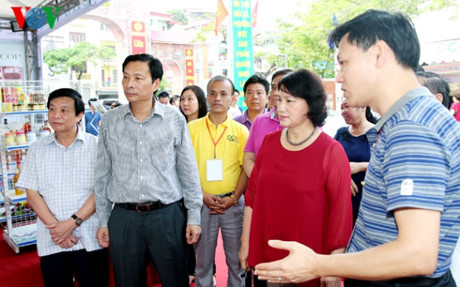 (VOVworld) – 越南国会主席阮氏金银5月2日出席2016年夏季广宁一个乡坊一个产品展。