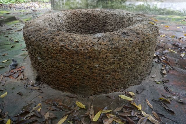他说:“这口井是用一块石头建的。过去,前辈把这块石头用来建井栏,这是很特别的。井底有4层砖红土,砖红土下是普通的鹅卵石。这是一口美观且质量非常好的水井”。