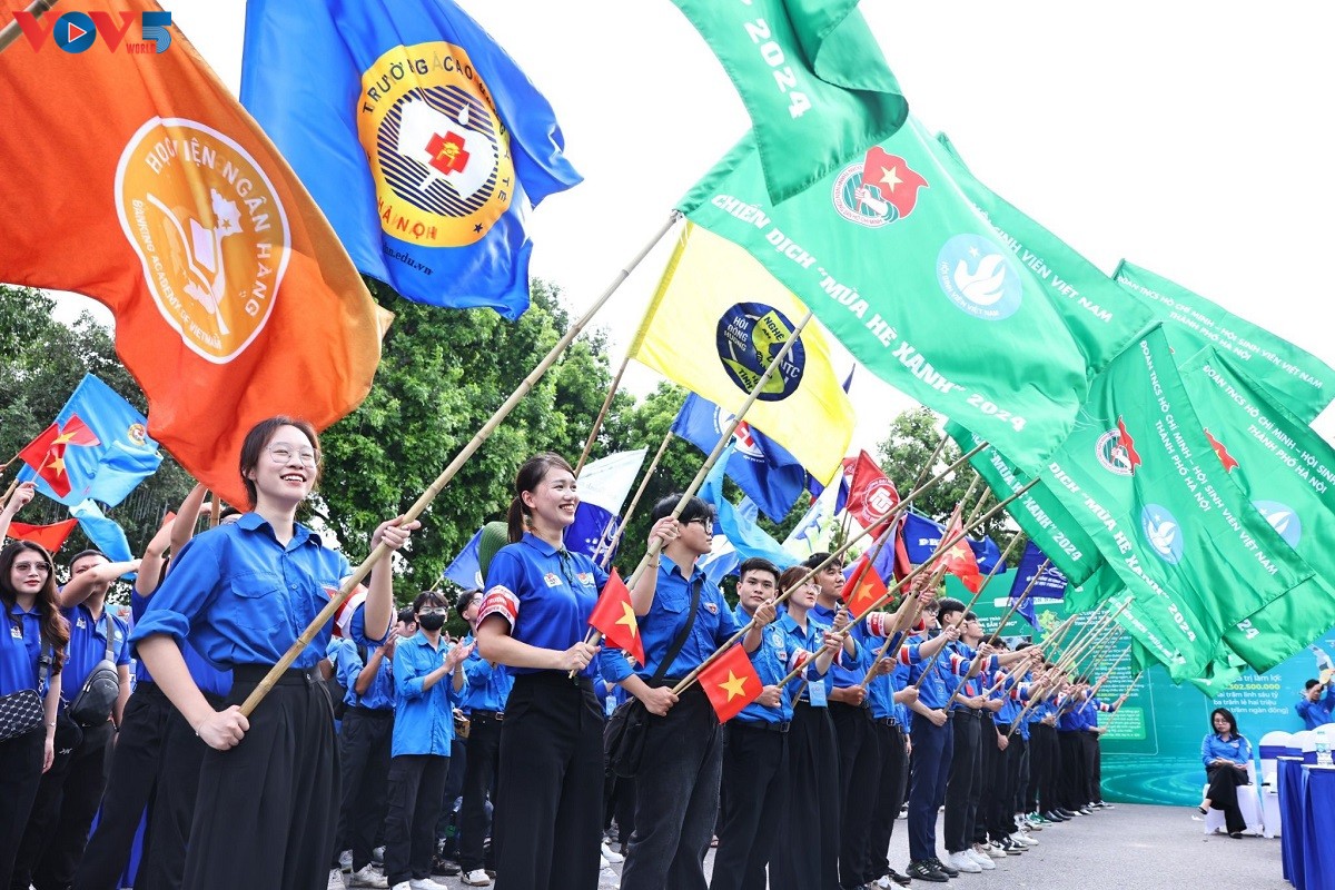 (VOVWORLD) -河内团市委和越南大学生协会6日上午在河内联合举行题为“三准备火焰永远明亮”的2024年绿色夏季大学生志愿者活动出征仪式。