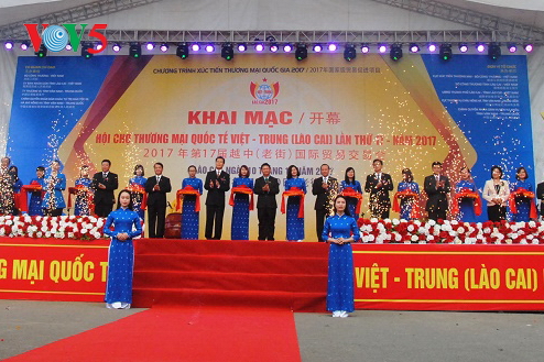 10日,2017年越中国际贸易交易会在老街金城商贸区开幕。这是自2000年以来越南老街和中国河口轮流举办的年度大型交易会。