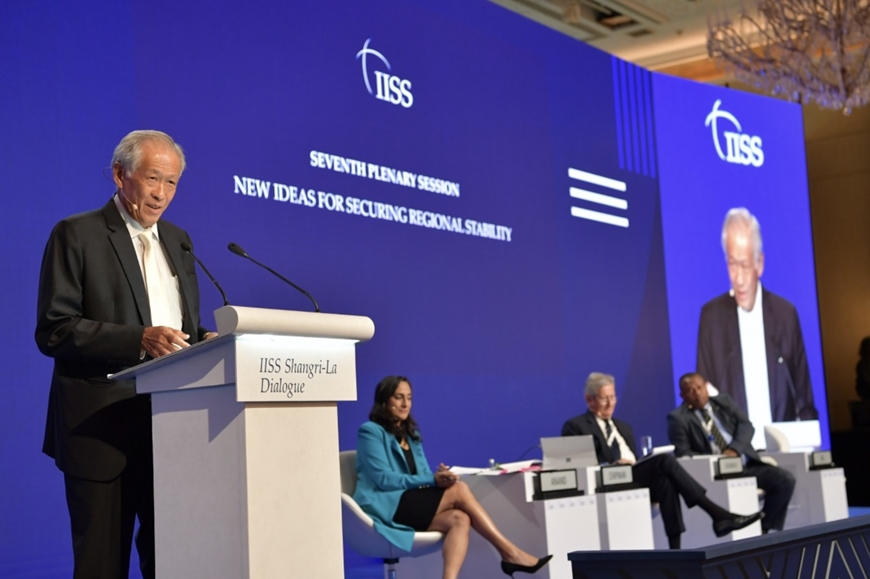 新加坡国防部长去年在香格里拉对话会上发表演讲。图片来源:mindef.gov.sg 。 |