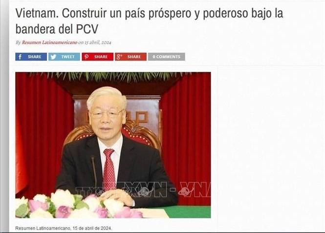 适值南方完全解放、国家统一49周年,阿根廷《拉美日报》(Resumen Latinoamericano)4月15日刊登越共中央总书记阮富仲题为“自豪并满怀信心地在党的光辉旗帜下,决心建设日益强大、文明、文化、英雄的越南国家”的文章。文章强调,越南共产党的诞生是越南民族的重大历史转折点,是马克思列宁主义与工人运动、爱国运动结合的成果。