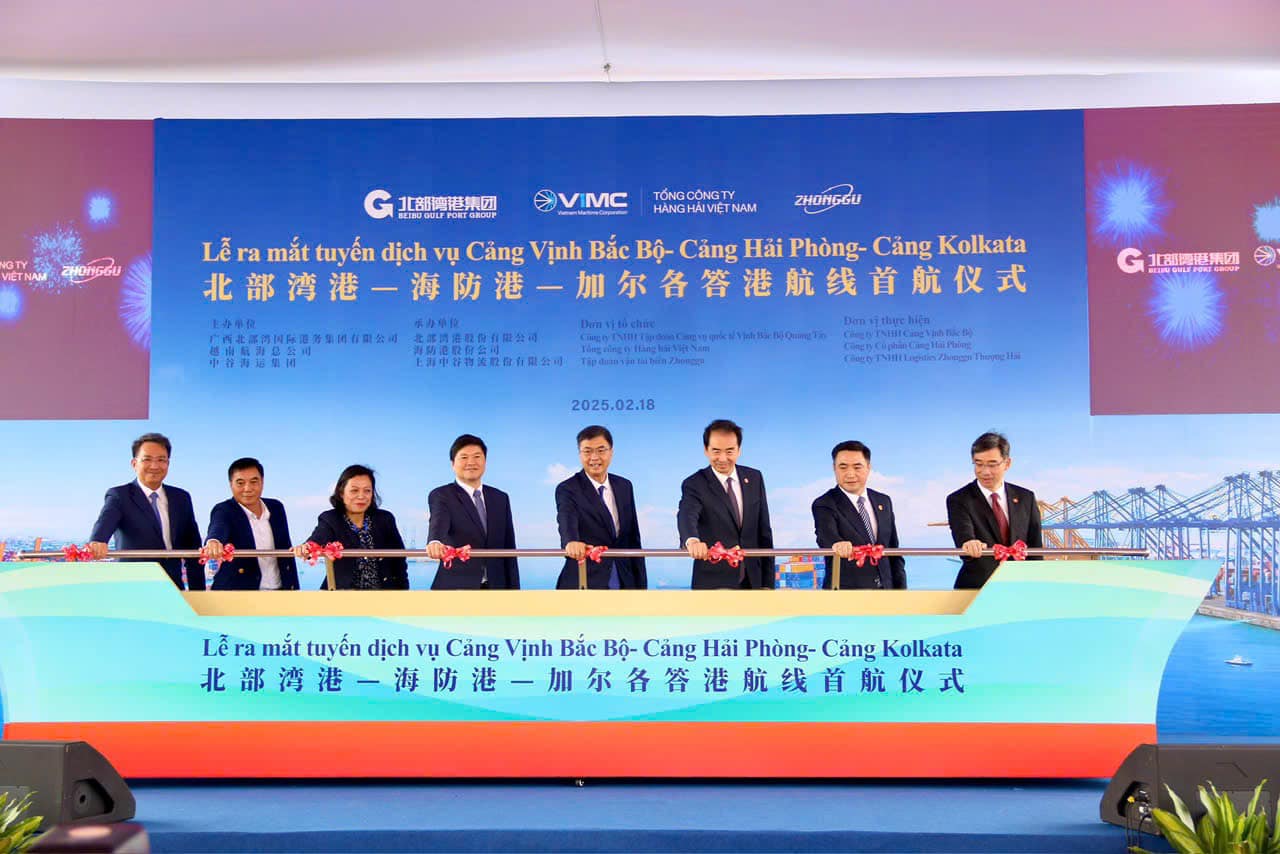 据越通社报道,2月18日,在海防港股份公司新宇港分公司,越南航海总公司(VIMC)与中国广西北部湾国际港务集团有限公司和中谷海运集团有限公司联合开通北部湾港-海防-加尔各答航线。这是北部湾港与海防港的首条集装箱直航航线。