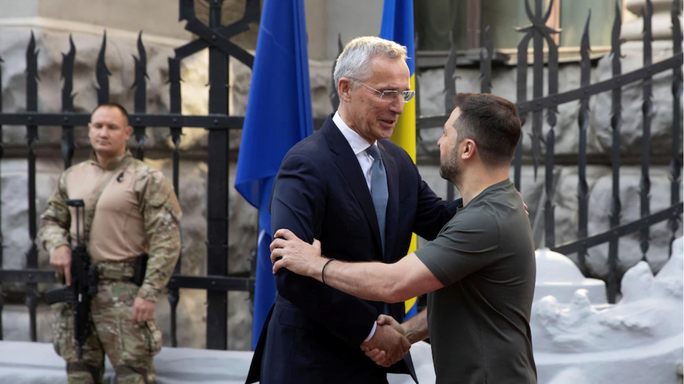 北约秘书长斯托尔滕贝格与乌克兰总统泽连斯基。 |