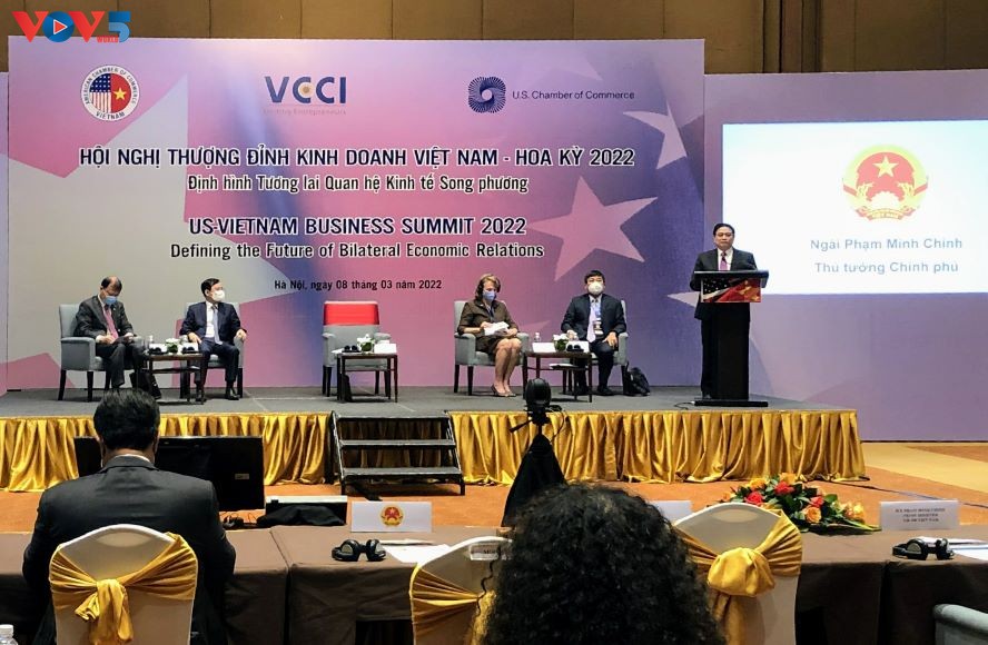 范明政在致辞中提到了5个重大问题,其中包括:越南经过35年革新后的发展与未来的定位;越美关系的成果与未来;疫情防控工作与经济复苏和可持续发展;绿色转型、适应气候变化和数字转型。