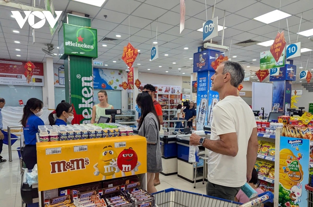 在胡志明市,一些超市也已经开始营业,为人们提供新鲜的食品。MM Mega Market超市生鲜食品采购部负责人范文雄表示,超市已准备好货源,在新年伊始满足人们的需求。他说:“我们与种植区的农民签订了长期合同,因此从大年初二就有了充足的货物,在超市重新营业时满足人们的需求。我们提供品种丰富的鱼、虾等食品,满足顾客的所有需求。”