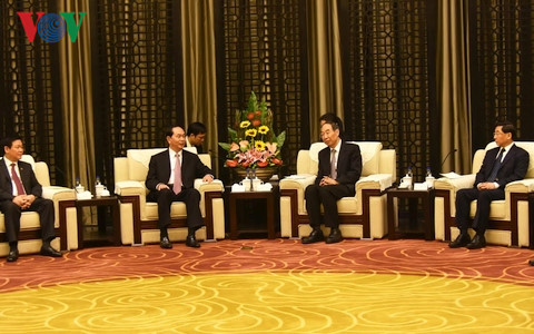 据本台记者越强报道,5月13日下午,越南国家主席陈大光会见中共福建省委书记、省人大常委会主任尤权和福建省省长于伟国。