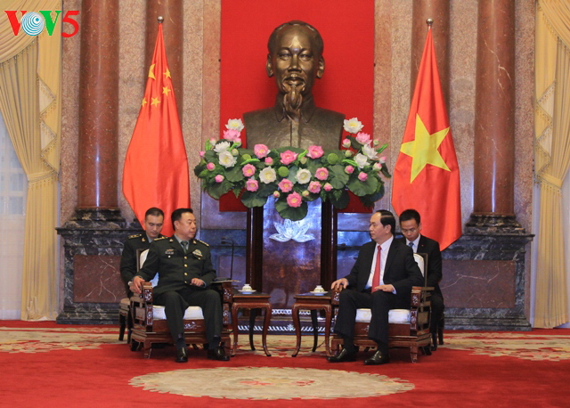 越南国家主席陈大光6月18日在河内会见正对越南进行正式友好访问的中共中央军委副主席范长龙。