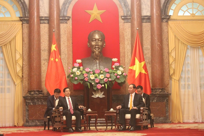 (VOVworld) - 越南国家主席陈大光9月24日在主席府会见来访的中国公安部长郭声琨时高度评价两国公安部过去期间积极、紧密合作,有效开展各项合作协议,主动配合打击各种犯罪尤其是高技术、毒品和拐卖人口犯罪。