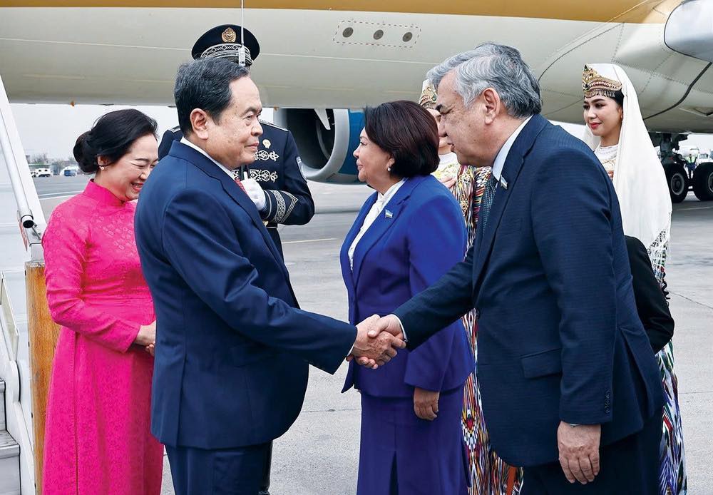4月5日下午,结束对亚美尼亚的正式访问后,国会主席陈青和夫人及越南国会高级代表团抵达塔什干I.卡里莫夫国际机场,开始对乌兹别克斯坦进行正式访问,并出席各国议会联盟第150届大会(IPU-150)。