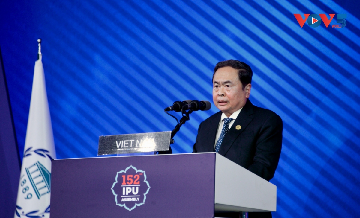 陈青敏在演讲中高度评价今年各国议会联盟大会的主题,认为其传递的信息既具有时代性,又具有紧迫性。他表示,越南正努力、自信、自强地步入新的发展阶段,目标是到2030年成为拥有现代工业、收入中等偏高的发展中国家,到2045年成为高收入的发达国家。越南正在实施新的增长模式,以科技、创新、数字化转型为动力,同时保障社会公平,保护环境,让人民更好享受发展成果。在独立、自主、自强、和平、友好、合作与发展的对外路线基础上,越南已经、正在并将继续与国际朋友和伙伴一道,积极、主动、负责任地参与解决地区和国际共同问题。