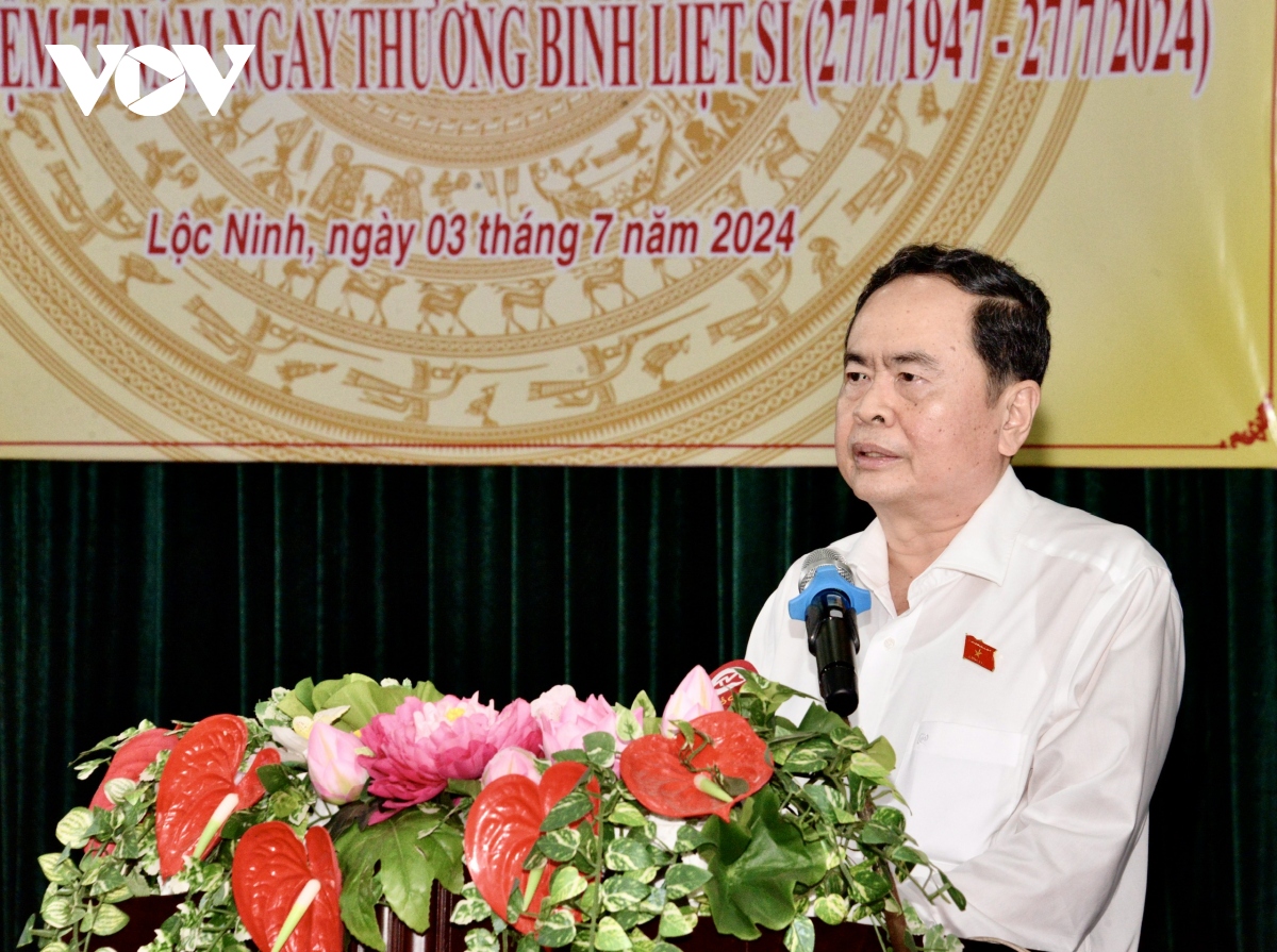 (VOVWORLD) - 国会主席陈青敏7月30日参观位于平福省禄宁县禄城乡的越南南方解放军指挥部旧址国家特别遗迹区并向禄城乡政策优抚家庭和为国立功者赠送礼物。