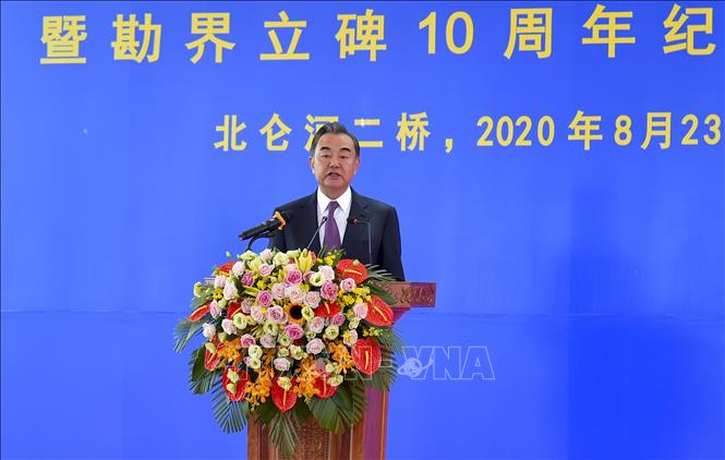 纪念仪式后,范平明与王毅共同参观越中陆地边界勘界立碑进程图片展,参观芒街市胡志明主席纪念馆,参观于2010年10月14日竖立的越中陆地边界首座界碑,即1369号界碑。