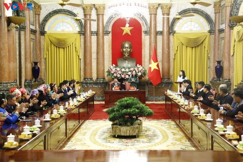 近年来,越南少数民族同胞的物质和精神生活日益得到改善,发展差距不断缩小;同胞们团结一心,携手建设和发展国家。
